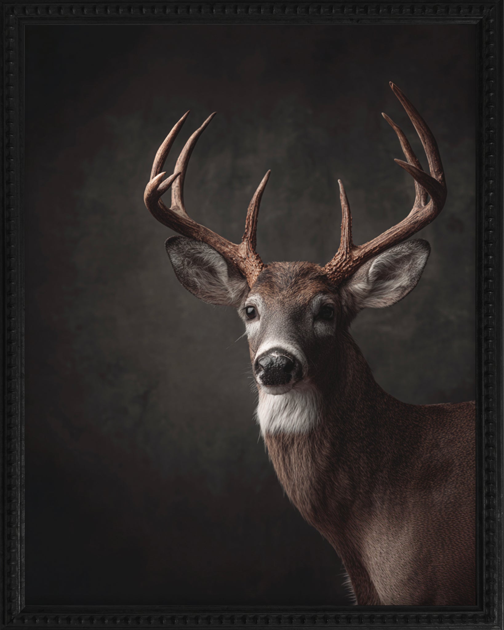 Our Antler Collection - Dark #5 printed on raw natural canvas giving it a time worn look - Framed in our Black Beaded Gallery Frame - approximately 16x20.