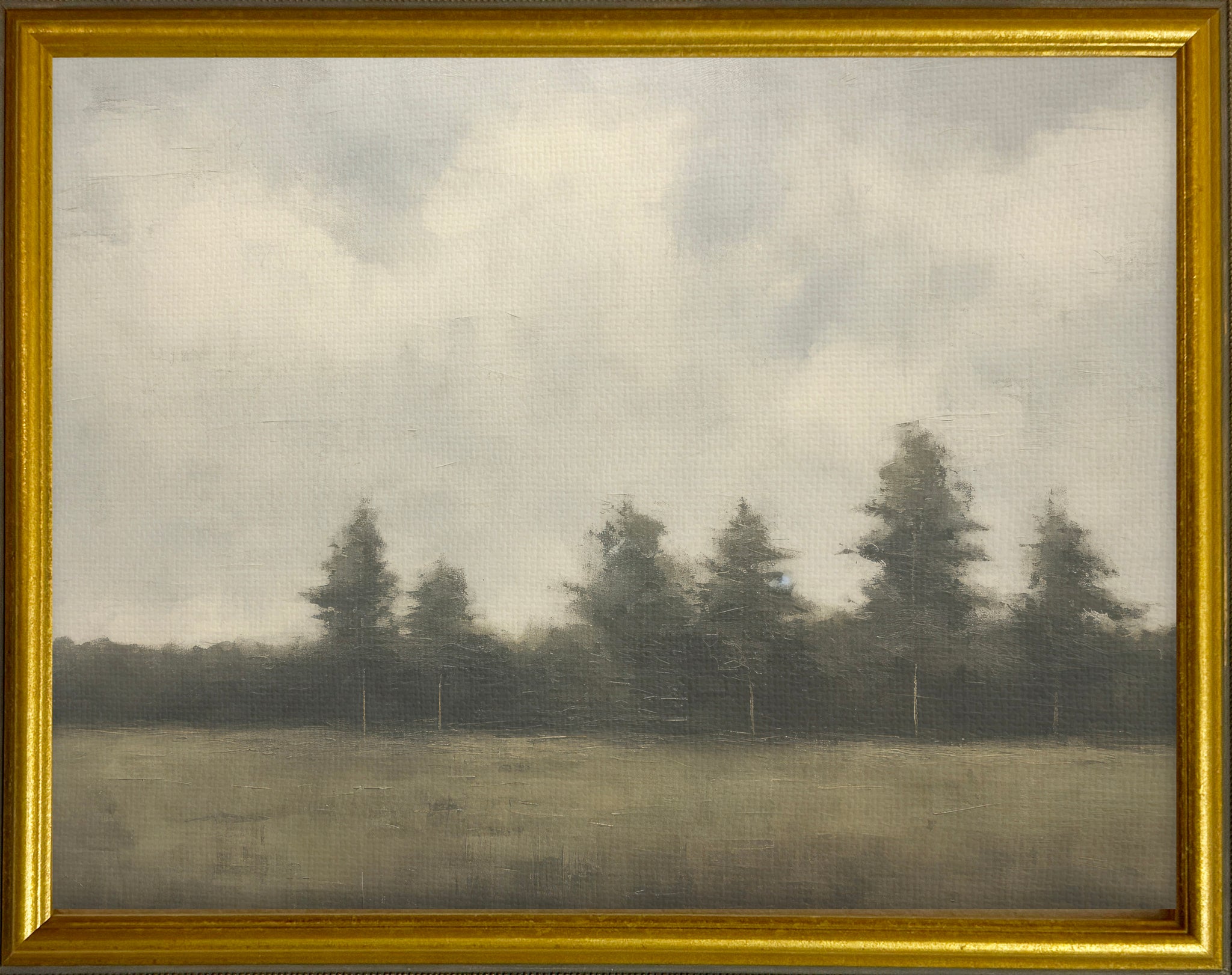Our Treescape 1 printed on raw natural canvas giving it a time worn look - Framed in our Gold Gallery Frame - approximately 16x20.